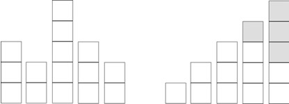 Así como Enzo es un entusiasta de las escaleras, es también algo flojo y no le gusta esforzarse demasiado en su labor, así que te pide tu ayuda para que construyas un programa que le diga para un conjunto de cajas apiladas, cual es la cantidad mínima de cajas que debe mover para construir una escalera. Por ejemplo, para las cajas apiladas de la figura anterior, tenemos que: